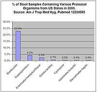 Figure 1 shows the prevalence of gastrointestinal protozoa in studies from the United States and Canada.[44][43] The most prevalent protozoa in these studies are considered emerging infectious diseases by some researchers, because a consensus does not yet exist in the medical and public health spheres concerning their importance in the role of human disease.[46][47] Researchers have suggested that their treatment may be complicated by differing opinions regarding pathogenicity, lack of reliable testing procedures, and lack of reliable treatments.[48] As with newly discovered pathogens before them, researchers are reporting that these organisms may be responsible for illnesses for which no clear cause has been found, such as Irritable Bowel Syndrome.[49][50][51]