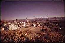 In the United States the government started to create the Naval Petroleum and Oil Shale Reserves in 1909.[52] The reserves were seen as a possible emergency source of fuel for the military, particularly the Navy.[48] The government reserved the Roan Plateau near Rifle, Colorado which later became a federal demonstration and test site.[48] First attempt to produce oil from the western deposits was made in Nevada by local businessman Robert Catlin by acquiring oil-shale properties in the 1890s and erecting the first retorts in 1915 and 1916. Although the attempt was commercially unsuccessful, in 1917 he incorporated Catlin Shale Products Company which made several unsuccessful attempts to sold shale oil products until it was dissolved in 1930.[31] The first attempts to exploit the Green River Formation deposit was made by establishment of The Oil Shale Mining Company in 1916.[31] In 1917, they erected the first commercial retort at the head of Dry Creek, near De Beque, Colorado.[53] However, also these attempts were unsuccessful and by 1926 the company had lost its property.[31] In addition, companies like Cities Service, Standard Oil of California, Texaco and Union started their oil shale operations in 1918–1920.[31] In 1915–1920 about 200 companies were established to exploit oil shale and at least 25 shale oil retorting processes reached to the pilot-plant stage. Discoveries of the large quantities of petroleum in eastern Texas ended the oil-shale boom.[34] One of technological achievements before World War II was invention of the N-T-U retort. In 1925, the NTU Company built a test plant at Sherman Cut near Casmalia, California.[54][55] In 1925–1929, the retort was also tested by the United States Bureau of Mines in their Oil Shale Experiment Station at Anvil Point in Rifle, Colorado.[31][54][56]