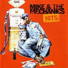 Hits is a compilation album by Mike + The Mechanics, released in 1996 except in the USA and Canada, where it was released in 2005. It contains nearly all of the band's hits up to the time of its release, omitting only "All I Need is a Miracle" (the 1996 remake of the song, which was also a hit, is included instead), "Seeing is Believing", the cover of the Beatles "Revolution", "Stop Baby", "Hanging By A Thread" and "Mea Culpa".