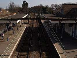 Hockley railway station is on the Shenfield to Southend Line in the East of England, serving the village of Hockley, Essex. It is 36 miles 1 chain (58.0 km) down-line from London Liverpool Street and is situated between Rayleigh and Rochford. Its three-letter station code is HOC.
