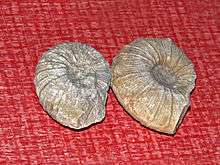 | Fossil shell of Holcodiscus fallax from Alpes-de-Haute-Provence, on display at Galerie de paléontologie et d'anatomie comparée in Paris | |