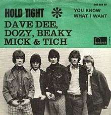 Hold Tight! is the name of a pop/rock song by Dave Dee, Dozy, Beaky, Mick & Tich. The song was recorded on 11 January 1966 at Fontana's studios in Marble Arch, London and released as a single in February 1966 with the B-side You Know What I Want, and on 24 June 1966, on the band's debut album.