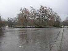 - An overspill weir crossed by the towpath on a low pier of stone blocks