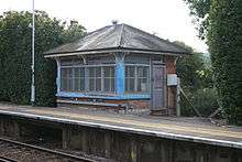 The disused signalbox on the up platform at Holmwood is Grade II listed.[3]