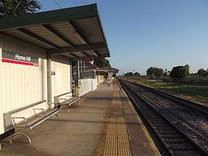 Home Hill railway station is located on the North Coast line in Queensland, Australia. It serves the town of Home Hill. The station has one platform. Opposite the platform lies a passing loop.