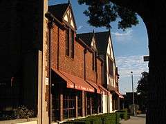 The Home Laundry is a historic building located at 432 S. Arroyo Parkway in Pasadena, California. The building was constructed in 1922 for the Home Laundry Company, a laundry service founded by Pasadena businessmen Daniel M. Linnard, Arnold J. Bertonneau, and Edward K. Hoak. All three men were well-known businessmen in Pasadena, and Linnard had a national reputation for his work in the hotel industry. The company's building represented a new type of building design in Pasadena, as the company's office space and industrial space were both visually separated and structurally integrated. In addition, the building has an uncommon Tudor Revival design created by the local architecture firm Marston, Van Pelt & Maybury. The building's design features ornamental half-timbering on the front facade, coursed brickwork, gabled dormers above the second-story windows, and stone quoins at the corners. The building is the only Tudor Revival commercial or industrial building in Pasadena.[2]