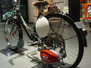 The Honda Cub F is a motorized bicycle, sometimes also categorized as a moped, introduced by Honda in 1952. It was a "clip-on" gasoline engine kit for bicycles produced by other manufacturers, identified by the slogan the white tank and the red engine (白いタンクに赤いエンジン) and popular for a design that prevented the two-stroke engine exhaust and oil from hitting the rider. The Society of Automotive Engineers of Japan (Japanese), includes the 1952 Honda Cub F as one of their 240 Landmarks of Japanese Automotive Technology.[1]