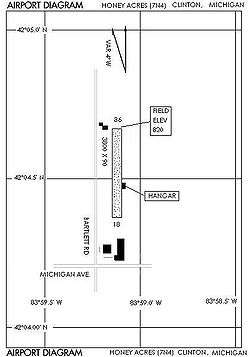 - ↑ http://www.city-data.com/airports/Honey-Acres-Airport-Clinton-Michigan.html