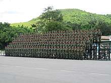 The Hong Kong Army Cadets Association Limited (Chinese: 香港青少年軍總會), established on January 18, 2015, is a Hong Kong Uniformed Youth Group (Chinese: 香港青少年制服團體), it is supported by the People's Liberation Army Hong Kong Garrison and the Liaison Office of the Central People's Government in the Hong Kong.[1] Established with the ethos "To Serve the Fatherland",[2] it has been criticised by some of suspected brainwashing. It's stated future aims include the opening of one or more non profit making schools in order to promote their ideals.[3] The Hong Kong Army Cadets Association is a development of the Military Summer Camp For Hong Kong Youth (Chinese: 香港青少年軍事夏令營) scheme organised by Betty Tung Chiu Hung-ping, the wife of former Chief Executive of Hong Kong Tung Chee-hwa, and the core of the estimated 2000 strong membership[4] is made up of attendees of the summer camps; the target membership of the Association are children and youths from the age of six upwards.[5] Of the Hong Kong Uniformed Youth Groups, the Association is the only one to use People's Liberation Army military drill,[6] and its uniforms, emblems and structure is based on that of the PLA.