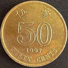 No more of this denomination was minted until 1951 when a copper-nickel coin was issued. It was 23.5 mm in diameter, weighed 5.81 g and 2 mm in thickness. Until 1971, the reeding was with a security edge and from then onwards was just reeded. In 1977 a nickel-brass coin was issued which reduced the size of the coin. The bauhinia series, without the queen's portrait, was issued in 1993. In 1997 a commemorative coin was issued for the hand over of Hong Kong to China. It featured an ox.