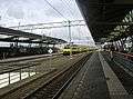 Hoofddorp has a depot/sidings further west from the station, this is the reason many sprinter services have their terminus over here. Intercity services terminating at Schiphol also use this depot before returning. The station consist of 2 double-track platforms and has 6 tracks. Regular bus services stop at street level below the station. Fast service ZuidTangent buses 300 and 310 use platform level next to the station.