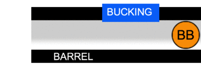 In airsoft guns, this is usually implemented as a projection (called a bucking) into the path of the projectile, on the top of the barrel. The bucking momentarily hinders the top side of the projectile, imparting a backspin that can exceed 120,000 revolutions per minute. This is usually adjustable so that the effect can be tuned to suit the weight or speed of the projectile and each player's preference.