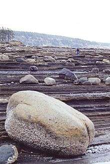 Fossil collectors have found Ammonite and Baculite fossils at Boulder Point on Hornby Island.[3] A new species of pterosaur (flying reptile) called Gwawinapterus beardi was identified based on a fossil found on a beach on Hornby Island.[4]