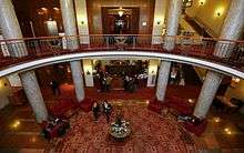 Hotel Gellért is a famous hotel in Budapest, Hungary. The hotel was erected on the right bank of the river Danube between 1916 and 1918 in the (Secession) Art Nouveau style with some biomorphic elements, at the foot of Gellért Hill, next to Szabadság Bridge. The Danubius Hotel Gellért, onetime Saint Gellért Hotel and Spa, was renovated in 1962 and in 1973. The spa, swimming pool and plaza built to the hotel is one of the most beautiful spas in Budapest. Hotel Gellért got the name "the first lady of Hungarian tourism". Gellért is one of the most famous historical hotels in Europe, which is well-known among businessmen and tourists as well, who return to Budapest over and over again.
