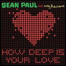 "How Deep Is Your Love" is the fifth single from the Jamaican recording artist Sean Paul's fifth studio album Tomahawk Technique, featuring American singer Kelly Rowland. It was written by Mikkel S. Eriksen, Jason Henriques, Ester Dean, Sean Paul Henriques and was produced by Stargate. It was released as a digital download in the United States on 24 July 2012. The song has charted in Switzerland and Austria.