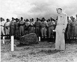 Howard White "Smiley" Johnson (September 22, 1916 – February 19, 1945) was a professional American football offensive lineman in the National Football League. He played the 1937, 1938 and 1939 college football seasons at the University of Georgia before joining the Green Bay Packers for the 1940 and 1941 seasons.[1] He joined the United States Marine Corps in 1942 and served with I Company, 3rd Battalion, 23rd Marines of the 4th Marine Division through the battles of Kwajalein, Saipan (earning a Silver Star), and Tinian.[2] On February 19, 1945, 1st Lieutenant Johnson was killed in action at the Battle of Iwo Jima, and awarded a second Silver Star posthumously. He was buried at the National Memorial Cemetery of the Pacific in Honolulu, Hawaii on February 2, 1949.[3]