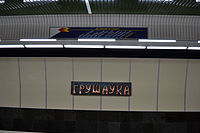 Hrušaŭka (HROOSH-ou-kə, Belarusian: Грушаўка; Russian: Грушевка) is a Minsk Metro station. It was opened on November 7, 2012 along with the metro stations of Michalova and Piatroŭščyna.