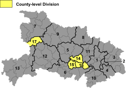 Hubei is divided into thirteen prefecture-level divisions (of which there are twelve prefecture-level cities (including a sub-provincial city) and one autonomous prefecture), as well as three directly-administered county-level cities (all sub-prefecture-level cities) and one directly-administered county-level forestry area.