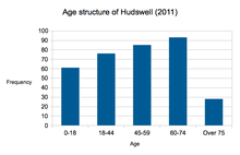 According to the 2011 census, the population of Hudswell is 353; divided between 169 males and 184 females.[8] 17.3% of the population was aged 0 to 17; 24.3% aged 18 to 44; 24.1% aged 45 to 59; The largest age group was between 60 and 74 with 26.3% and 7.9% aged 75 and over.[9]