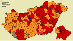 Parliamentary elections were held in Hungary on 9 April 2006, with a second round of voting in 110 of the 176 single-member constituencies on 23 April.[1][2] The Hungarian Socialist Party emerged as the largest party in the National Assembly with 186 of the 386 seats, and continued the coalition government with the Alliance of Free Democrats. It marked the first time a government had been re-elected since the end of Communist rule.[3]