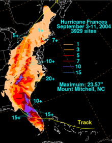 - 1 2 David M. Roth (2004). Hurricane Frances Rainfall. Hydrometeorological Prediction Center. Retrieved on 2007-04-08.