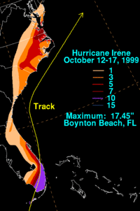 - 1 2 Melbourne National Weather Service (1999). "Hurricane Irene Preliminary Summary 10-16-99". Archived from the original on August 22, 2006. Retrieved 2006-07-05.