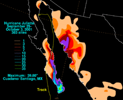 - 1 2 United Nations Office for the Coordination of Humanitarian Affairs (September 29, 2001). "Mexico - Hurricane Juliette OCHA Situation Report No. 5". ReliefWeb. Retrieved July 7, 2010.