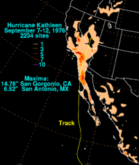 - 1 2 Roth, David (2008). "Hurricane Kathleen – September 7–12, 1976". Tropical Cyclone Rainfall Climatology. Hydrometeorological Prediction Center. Retrieved 2008-05-15.