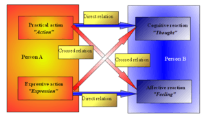 The work on subpersonalities[2] was integrated into a hypostatic model.[3] The model describes personality aspects and dimensions, as well as intra- and interpersonal relations. Not the person whole and alone, nor the relationship, but the relation between parts of person(s) is held as a central element that promotes both personal and social organization and disorganization. Personality is viewed as both an agency and a construction, along with its development and psychopathology, as the model is accompanied by specific methods of assessment and therapy, addressing each of the personality dimensions. The hypostatic relations of the human mind also imply the existence of a hypostatic model of consciousness, representing the contents of consciousness as an identity of various aspects, different only with respect to each other, but tending to coincide in a certain aspect of their consideration.[4]