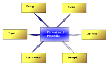 Human behavior is generated through the interaction and coupling of these human aspects, creating personality dimensions. The six behavioral, mental, and personality dimensions are:[36]