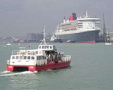 Every train connects at the pier head with an arrival and departure of the Hythe Ferry. The ferry carries passengers and bicycles, and takes about 10 minutes for the crossing. En route, the ferry passes the terminal used by the passenger liners Queen Mary 2 and Queen Victoria and by other cruise ships, giving good views of the vessels when they are in port.[2][12][13]
