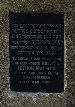 Icchok Malmed (יצחק מאַלמעד) (born 1903 in Brześć nad Bugiem - 8 February 1943 in Białystok, Poland) was a Polish Jew and fighter of the Białystok Ghetto during the German occupation of Poland in World War II.