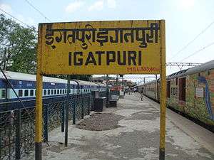 - ↑ "Igatpuri Departures at IndiaRailInfo". IRI. Retrieved 2013-07-09.