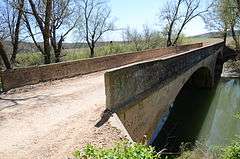 The Illinois River Bridge at Phillips Ford is a historic bridge in rural northern Washington County, Arkansas. It is a double-span closed-spandrel concrete arch bridge built in 1928 by the Luten Bridge Company, and it carries County Road 848 across the Illinois River in the Ozark National Forest south of U.S. Route 412 (US 412). The bridge's arches each span 81 feet (25 m), and the total structure length is 168 feet (51 m). The bridge uses Luten's patented method of reducing material in the bridge by the addition of metal rings to the spandrel walls.[2]