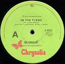 "In the Flesh" is a song by American band Blondie. Originally from the band's self-titled debut album, Blondie, the song was Blondie's second and final single on the Private Stock label.