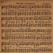 "In the Gloaming" is an 1877 song composed by Annie Fortescue Harrison with lyrics taken from a poem by Meta Orred. Orred's poem (of the same title as the song) appeared in her 1874 book Poems.[1] The 1877 song was very popular in the United States that year.[1] It is not to be confused with the 1911 song "Roamin' In The Gloamin'".