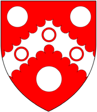 - Lewis III Incledon (1636-1699), younger brother. He married twice: firstly in 1672 to Alice Addington, a daughter of John Addington (d.1661) of High Bickington in Devon and Harlowbury[12] in Old Harlow, Essex, and a co-heiress to her brother Thomas Addington (d.1688). The arms of Addington (Per pale Ermine and Ermines, between three fleurs-de-lys, a chevron charged with four lozenges, all counter-changed[13]) are shown at the bottom of the right margin on the mural monument to Lewis III Incledon in Braunton Church. Without progeny. Secondly in 1672 at Tawstock, he married Elizabeth Fane (d.1717), daughter of Hon. Robert Fane of Combe Bank,[14] Sevenoaks, Kent, 7th son of Francis Fane, 1st Earl of Westmorland (1580-1629). Tawstock Court was the seat of Henry Bourchier, 5th Earl of Bath (1593-1654), whose wife was Rachell Fane (d.1681), a daughter of the 1st Earl of Westmorland. By his wife Elizabeth Fane Lewis III had two surviving sons: