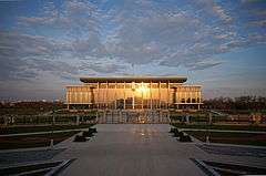 Independence Palace (Belarusian: Палац Незалежнасцi) is a palace in Minsk. Located on the Pieramožcaŭ Avenue, near the exhibition center "BelExpo" and the State Flag Square, not far from Victory Park.