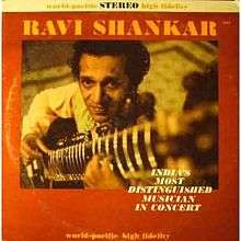 India's Most Distinguished Musician In Concert is a 1962 live album released by Ravi Shankar. It was recorded 19 November 1961 during one of Shankar's early seminal American performances, at UCLA.[1] It was later digitally remastered and released in CD format through Angel Records. The digital remastering was by Squires Productions.