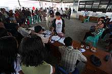 Candidates had to register from 10–16 May, with medical checks, which they all passed,[35] from 11–15 May.[36] The candidates were officially announced on 28 May[37] and drew their ballot numbers at the General Election Commission building on 31 May.[38] Megawati–Prabowo drew number 1, SBY–Boediono number 2 and Kalla–Wiranto number 3.[38]