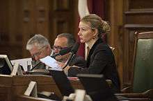 In addition to her role in parliament, Lībiņa-Egnere has been serving as the head of the Latvian delegation to the Parliamentary Assembly of the Council of Europe.[4] As member of the Assembly, she currently is the chairwoman of the Sub-Committee on Human Rights. She also serves as a member of the Committee on Legal Affairs and Human Rights; the Committee on the Honouring of Obligations and Commitments by Member States of the Council of Europe (Monitoring Committee); the Committee on the Election of Judges to the European Court of Human Rights; the Sub-Committee on the implementation of judgments of the European Court of Human Rights.