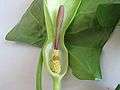 - A spadix is a spike of flowers densely arranged around it, enclosed or accompanied by a highly specialised bract called a spathe. It is characteristic of the Araceae family.