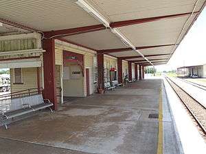 Ingham railway station is located on the North Coast line in Queensland, Australia. It serves the town of Ingham. The station has one platform. Opposite the platform lies a passing loop.