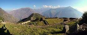 Inka Wasi or Inkawasi (Quechua inka Inca, wasi house, "Inca house",[2] hispanicized spelling Incahuasi) is a mountain in the Willkapampa mountain range in the Andes of Peru whose summit reaches 4,315 metres (14,157 ft) above sea level. It is situated in the Apurímac Region, Abancay Province, Cachora District. The mountain lies on the bank of the Apurímac River, opposite the archaeological site of Choquequirao (Chuqik'iraw). On its northern slope there is a small archaeological site named Inka Raqay. Tourists are also attracted by the viewpoint of Inka Wasi which provides good views of the Apurímac valley, Chuqik'iraw and Kiswar.