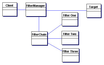 Filter manager, filter chain, filters and target are components of the pattern.
