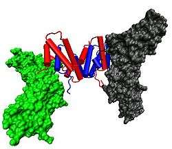 - ↑ Thiel DJ, le Du MH, Walter RL, D'Arcy A, Chène C, Fountoulakis M, Garotta G, Winkler FK, Ealick SE (September 2000). "Observation of an unexpected third receptor molecule in the crystal structure of human interferon-gamma receptor complex". Structure. 8 (9): 927–36. doi:10.1016/S0969-2126(00)00184-2. PMID 10986460.