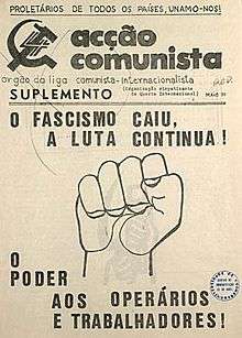 Internationalist Communist League (Portuguese: Liga Comunista Internacionalista) was a Trotskyist political party in Portugal. LCI was founded in 1973. It became the Portuguese section of the reunified Fourth International. The first general secretary of LCI was Francisco Louçã.