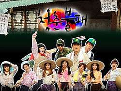 Invincible Youth (Hangul: 청춘불패; Hanja: 靑春不敗; RR: Cheongchun bulpae) is a South Korean variety show which aired its first season on KBS2 from October 23, 2009 to December 24, 2010. Season 1 featured seven girls (collectively known as G7) from K-pop idol groups wherein they experience how it is to live and survive in the Korean rural outdoors. It started its second season on November 12, 2011 featuring eight girls.[1][2]