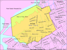 Inwood is included among the Five Towns, an informal grouping of villages and hamlets in Nassau County on the South Shore of western Long Island adjoining the border with Queens County in New York City. Despite the name, none of the communities are towns. In addition to Inwood, the Five Towns is usually said to be composed of the villages of Lawrence and Cedarhurst, the hamlet of Woodmere, and "The Hewletts", which consist of the villages of Hewlett Bay Park, Hewlett Harbor and Hewlett Neck and the hamlet of Hewlett, along with Woodsburgh.[1] The "towns" most commonly included as constituents of the "Five Towns" are all within the Town of Hempstead. Inwood is represented as part of the Town's 3rd District by Councilman Bruce A. Blakeman.
