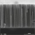 Ion track technology deals with the production and application of ion tracks in microtechnology and nanotechnology.[6] Ion tracks can be selectively etched in many insulating solids, leading to cones or cylinders, down to 8 nanometers in diameter.[7] Etched track cylinders can be used as filters,[8][9] Coulter counter microchannels,[10] be modified with monolayers,[11] or be filled by electroplating.[12][13]